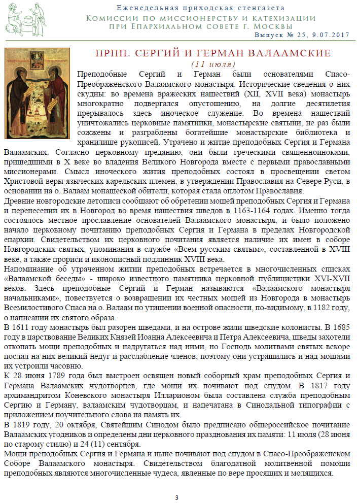 Еженедельная приходская стенгазета Комиссии по миссионерству и катехизации при Епархиальном совете г. Москвы в неделю пятую по Пятидесятнице Добавить комментарий Поделиться:TwitterВКонтактеОдноклассникиGoogle