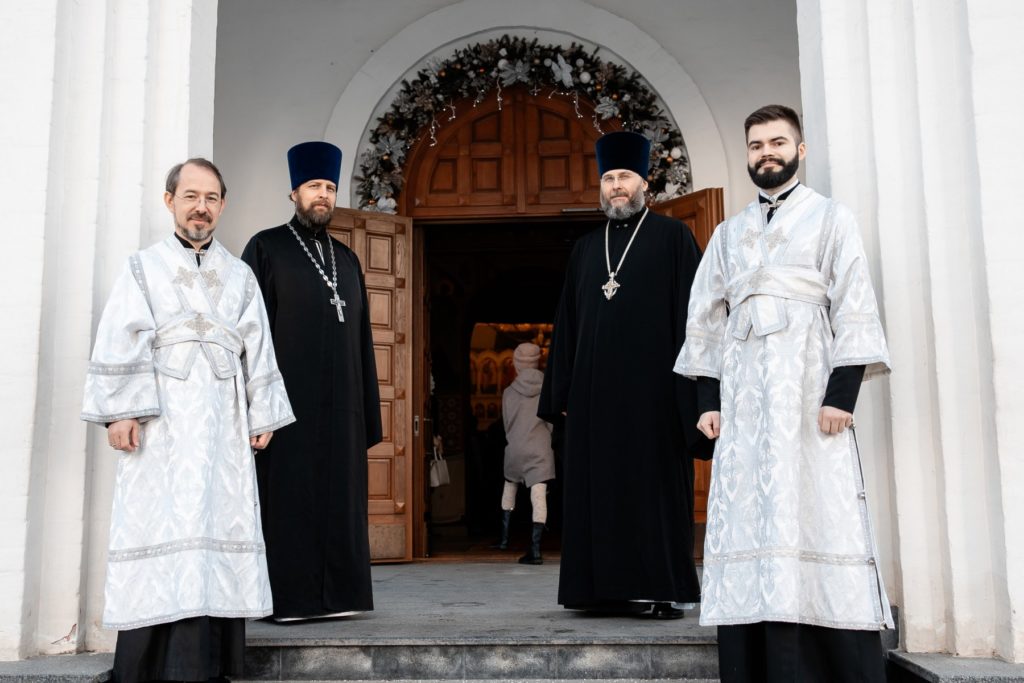Его Высокопреосвященству сослужили иерей Андрей Шумкин, благочинный Успенского округа, иерей Димитрий Крутов, настоятель храма, духовенство отвечающее за работу с молодежью и клирики храма.