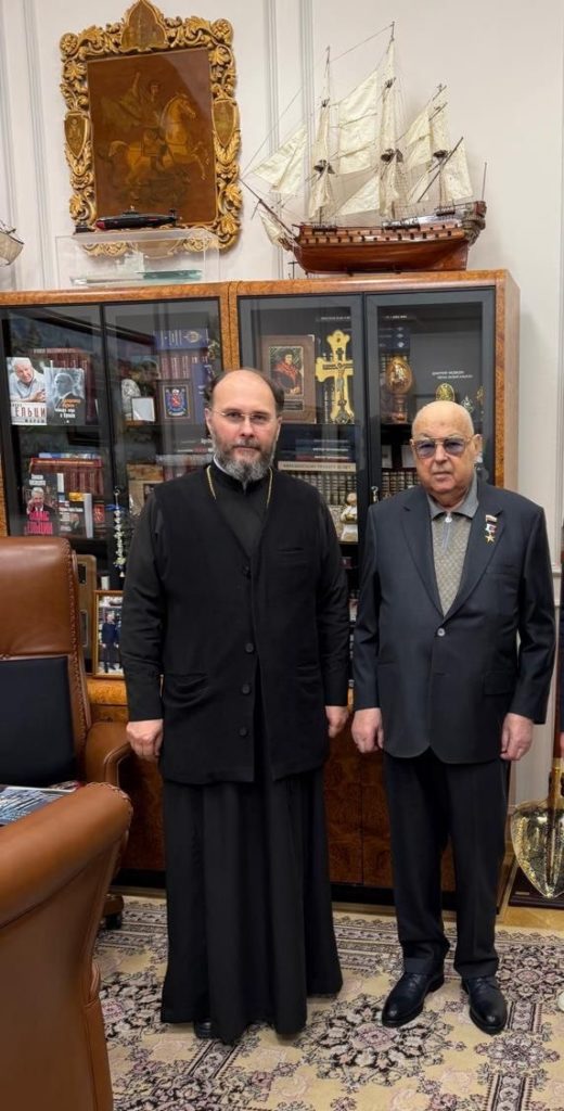 Затем состоялось вручение церковных наград. Во внимание к помощи в строительстве храма святителя Николая Мирликийского, Патриаршего подворья в Щукине, Патриарших наград были удостоены: